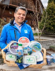 Daniel Erni mit einer Auswahl seiner Napfmilch-Produkte