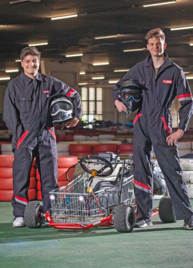 14 Ein M schneller Zwei junge Lkw-Mechs bauen Migros-Wägeli zu Go-Karts um