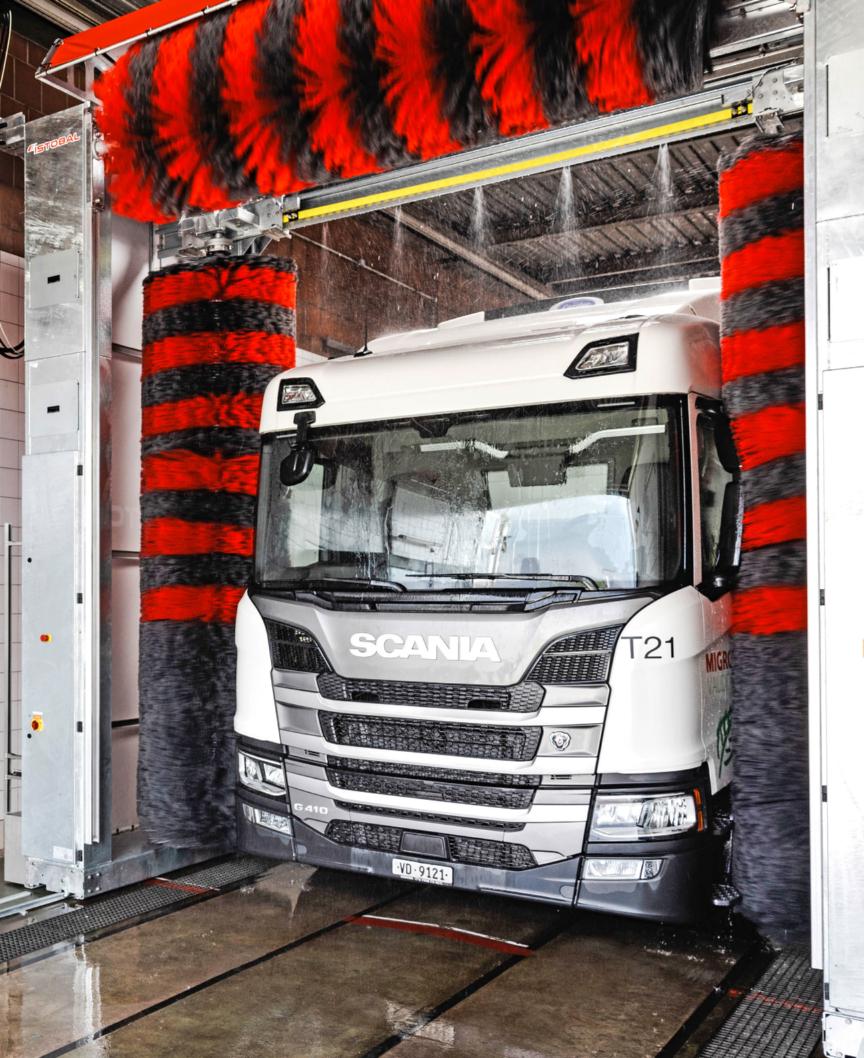 Le moment Migros Un nouveau portique de lavage a été installé fin avril à la centrale de distribution de Migros Vaud à Écublens (VD). Entièrement automatisé, il permet de nettoyer tant des voitures que des camions.
