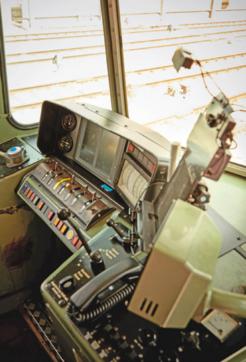 1 Mein Arbeitsplatz «Hier sieht man den Führerstand meiner Lieblingslok, die den Namen Re 420 trägt. Sie stammt aus den 1970er-Jahren und ist ein richtig treues Arbeitspferd. Hier geht es noch völlig analog zu – ich bremse und beschleunige mit grossen Hebeln.»
