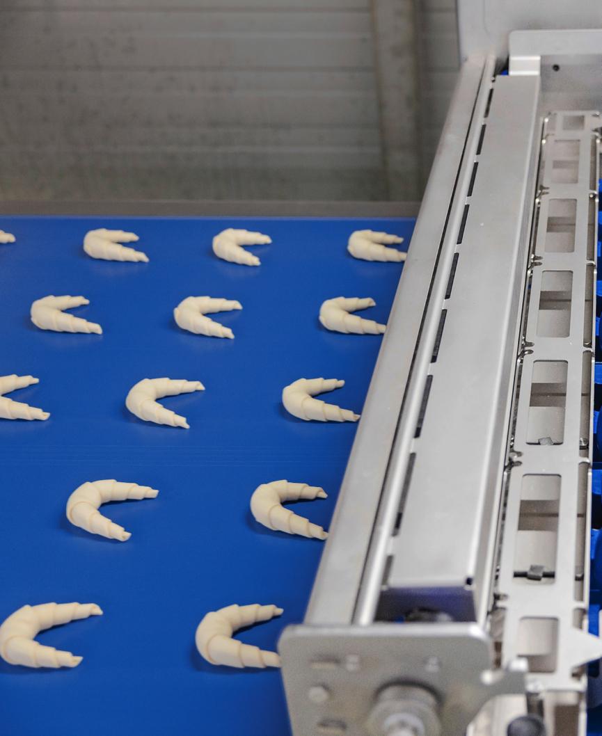 Migros-Moment in Ecublens VD Gipfeli werden am Produktionsstandort Ecublens in die bekannte Form gebogen. Die vollautomatisierte neue Gipfeli-Maschine schafft bis zu 21 000 Croissants pro Stunde. Das Bild stammt vom 21. März 2023.