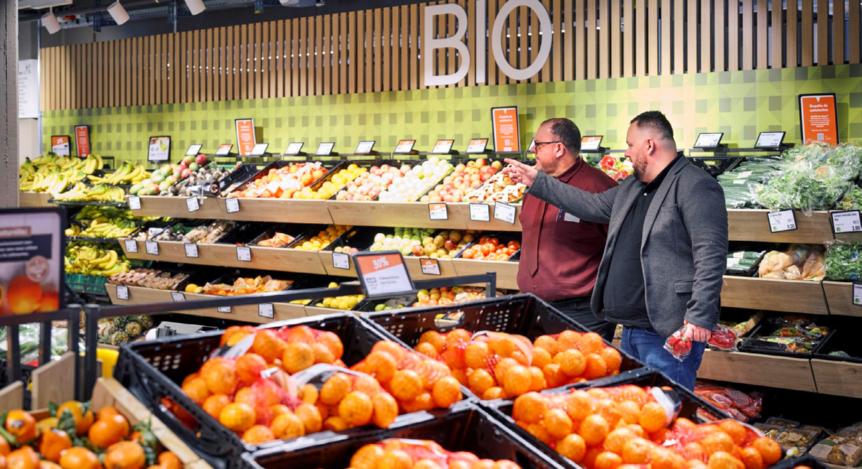 Le moment Migros À Migros, le bio devient encore plus bio: d’ici 2025, la majorité des produits de la marque Migros Bio porteront le label Bourgeon de Bio Suisse, qui applique les directives les plus rigoureuses. Ici le supermarché de Crans-Montana (VS)