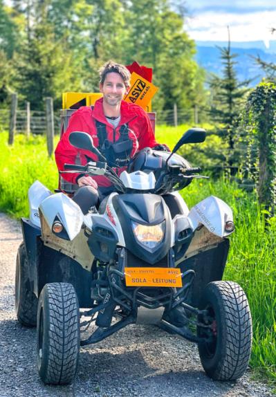 Philipp Schmid ist seit mehreren Jahren Streckenchef der Winti-SOLA. Am Lauftag ist er mit seinem Quad als Vorfahrer auf der Strecke unterwegs, kontrolliert die Wegführung und bessert wo nötig nach.
