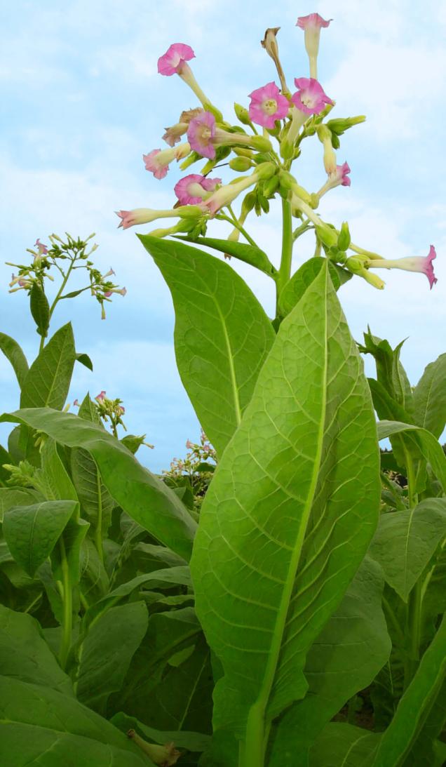 Damit sind meist die getrockneten, zerkleinerten Blätter der Tabakpflanze gemeint, die in Form von Zigaretten oder Zigarren geraucht werden. Die krautige Tabakpflanze gehört zu den Nachtschattengewächsen und ist eng mit der Kartoffel und der Tomate verwandt. Sie wird bis zu zwei Meter hoch und hat grosse, klebrige Blätter. Es gibt etwa 75 verschiedene Tabakarten.