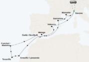 mit Valencia, Madeira und Malaga mit Cadiz, Lissabon und Gibraltar