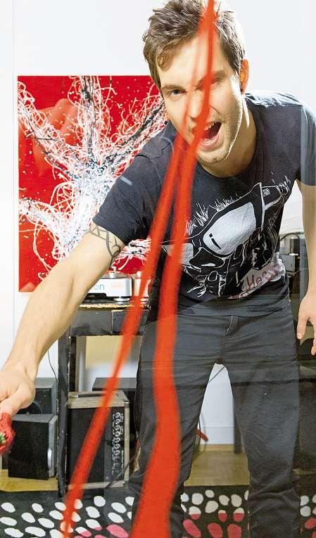 Instinctif et torturé, l’artiste et DJ genevois Ariel Kinsky, 22 ans, atrouvé dans l’action painting un moyendes’exprimer.Etdetoucher un certain public,puisque sestoilescommencent àsevendre.