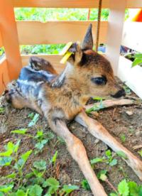 unter eine Kiste am Wiesenoder Waldrand», erklärt Daniel Naef. «Sobald der Bauer die Wiese gemäht hat, lassen wir es wieder frei.» Jetzt, am Anfang der Setzzeit, sei das Einfangen einfach: In den ersten zwei bis drei Wochen ihres Lebens verlassen sich Kitze ausschliesslich auf ihre Tarnung. Nähert sich ihnen jemand, verfallen sie in eine Starre. Das ändert sich, wenn sie älter sind. «Wenn wir im Juni fliegen, erwischen wir die Rehkitze kaum mehr», sagt Naef.