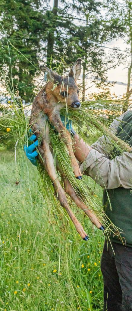 Laut Jagdstatistik werden jährlich über 1000 Rehkitze durch Mähmaschinen getötet. Früher versuchten viele Landwirte Rehe von ihren Wiesen fernzuhalten, indem sie am Vortag des Mähens flatternde Aluminiumoder Plastikbänder aufhängten. Diese Massnahme wirke aber längst nicht immer, sagt Daniel Naef. «Rehgeissen gewöhnen sich oft rasch daran.» Wärmebilddrohnen sind deshalb in den vergangenen Jahren zur Rehkitzrettungsmethode Nummer eins geworden. Schweizweit wurden 2021 auf diese Weise mehr als 2500 Rehkitze gerettet, bei einem Rehbestand von etwa 140 000 Tieren. Es existieren aber auch andere Methoden, um Rehkitze aufzuspüren:
