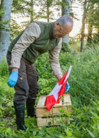 unter eine Kiste am Wiesenoder Waldrand», erklärt Daniel Naef. «Sobald der Bauer die Wiese gemäht hat, lassen wir es wieder frei.» Jetzt, am Anfang der Setzzeit, sei das Einfangen einfach: In den ersten zwei bis drei Wochen ihres Lebens verlassen sich Kitze ausschliesslich auf ihre Tarnung. Nähert sich ihnen jemand, verfallen sie in eine Starre. Das ändert sich, wenn sie älter sind. «Wenn wir im Juni fliegen, erwischen wir die Rehkitze kaum mehr», sagt Naef.