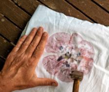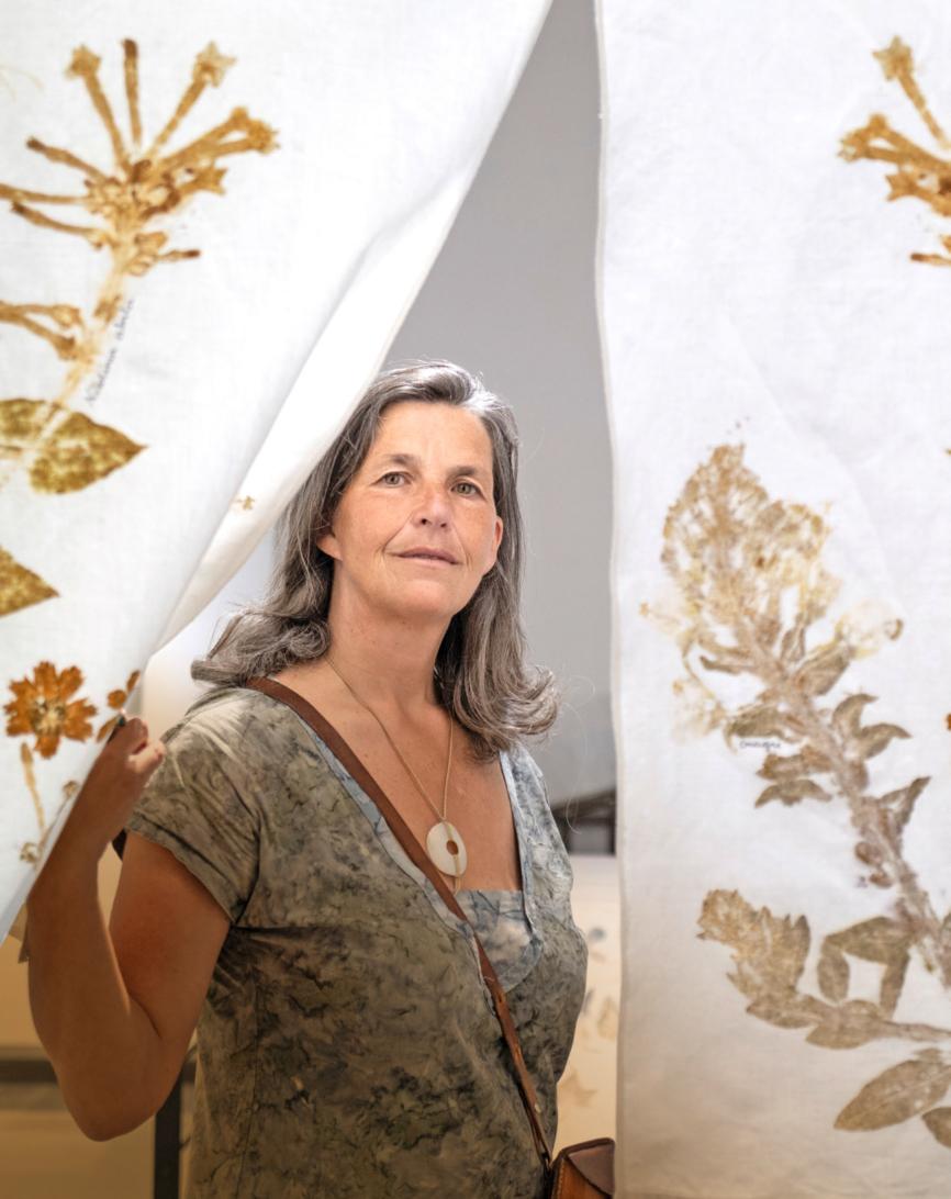 L’artiste Sandrine de Borman réalise des impressions végétales sur tissu.