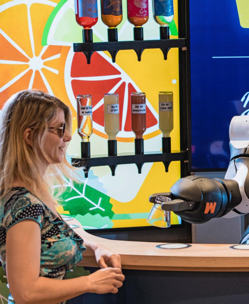 Le moment Migros Au bar du supermarché MMM de Crissier (VD), un robot prépare des «mocktails», des cocktails sans alcool. Ils étaient servis gratuitement jusqu’au 28 mai. Le bar, temporaire, ne restait en effet que deux semaines sur place avant de poursuivre sa tournée dans les magasins Migros de Suisse.