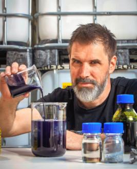 David Crettenand a eu l’idée géniale de donner des électrons à la poudre d’indigo pour la rendre soluble.