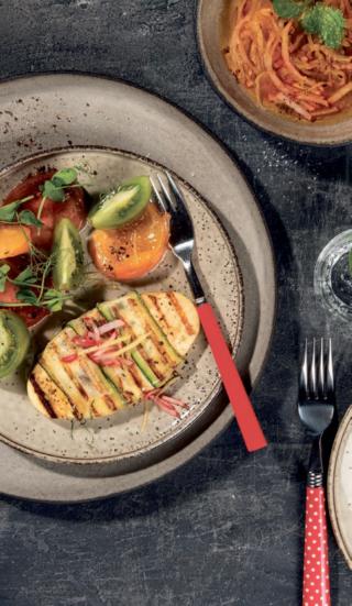 Cuire 100 g de lentilles rouges recouvertes d’eau jusqu’à ce qu’elles soient juste tendres, soit env. 10 min. puis les rafraîchir sous l’eau froide et bien égoutter. Mélanger ½ cc de poivre de Cayenne à 4 cs d’huile d’olive. Verser 360 g de yogourt à la grecque dans une jatte, y presser 2 gousses d’ail puis le relever d’un peu d’huile épicée et de sel. Hacher la moitié d’un bouquet d’aneth et l’incorporer. Répartir la sauce au yogourt sur les assiettes. Tailler 1½ concombre à salade non épluché en fines languettes, p. ex. avec un couteau économe, et les dresser sur le yogourt. Parsemer de lentilles puis y effeuiller le reste de l’aneth. Arroser le tout avec le reste de l’huile épicée et saler. Plus de recettes de lentilles sur migusto.ch
