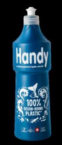 Das Kultspülmittel Handy hat den Swiss Packaging Award 2023 gewonnen. Ausgezeichnet wurde die Limited Edition, die Anfang Mai 2023 in den Handel gekommen ist. Die ozeanblaue Flasche besteht aus rezykliertem Kunststoff, der in Küstennähe gesammelt wurde – ein Beitrag zum Meeresschutz. Zusätzlich heimste das Verpackungskonzept auch den Publikumspreis ein.