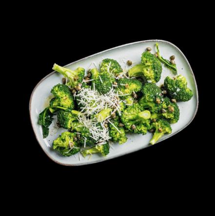 Partager 600 g de brocolis en petits bouquets et les cuire dans de l’eau salée en les gardant croquants. Mélanger 4 cs de câpres, 4 cs d’huile d’olive et 2 cs de jus de citron, saler et poivrer. En arroser les brocolis et parsemer de parmesan. Servir chaud ou froid. La recette se trouve sur migusto.migros.ch