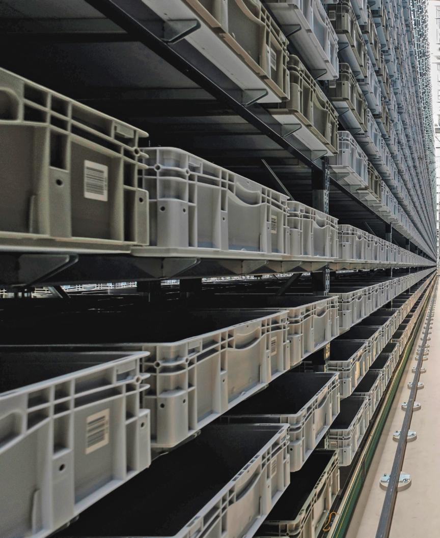 Le moment Migros L’entrepôt automatisé de petites pièces (AKL) de Digitec Galaxus à Wohlen (AG) est en service depuis 2017. De petits articles peuvent y être stockés. Le bâtiment a une surface de 5000 m2, mesure 18 mètres de haut et possède 16 allées.