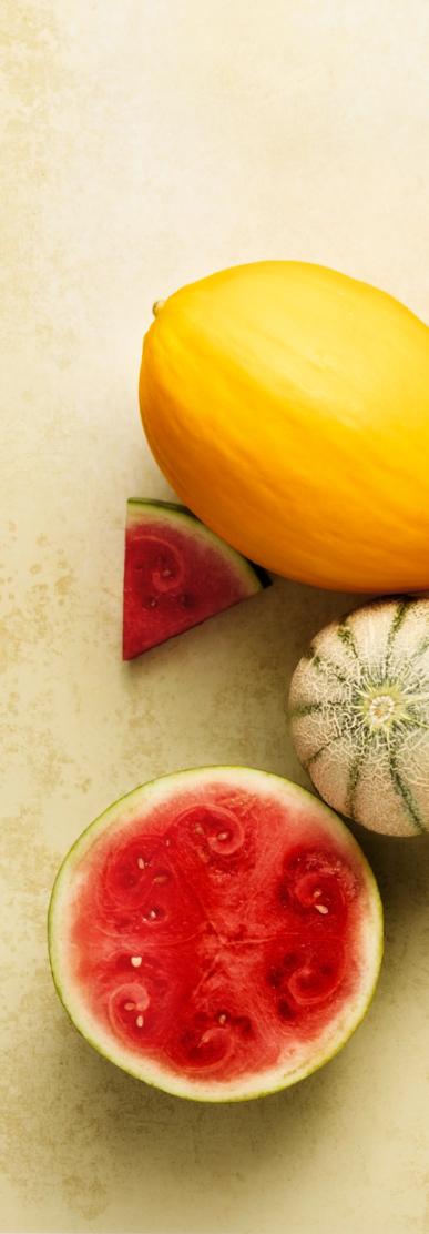 Découvrez des recettes à base de melons et pastèques en pages 28 et suivantes.