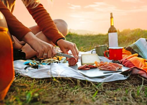 Gegen Insektenstiche: Mücken und andere Plagegeister werden in der Dämmerung aktiv. Spätestens dann solltest du den Anti-Insektenspray zücken. Dafür sprayst du Arme, Beine, Gesicht und Füsse gut ein.