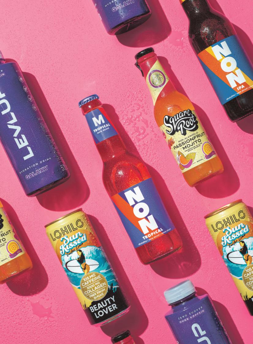 2.40 Passionfruit Mojito Square Root sans alcool, 200 ml 1.50 Non Tropical sans alcool, 330 ml 2.20 Sun Kissed Lohilo 330 ml