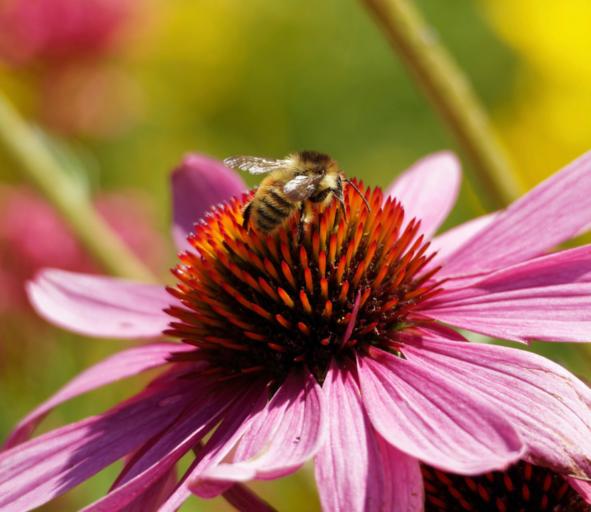 Migros-Moment in Zürich Die Imkerin Mirjam Lendenmann kümmert sich auf dem Dach des Migros-Hochhauses am Limmatplatz um ihre Bienenvölker und produziert mitten in der Stadt Honig für das Personalrestaurant Guggi. Das Bild entstand im Juni 2019.