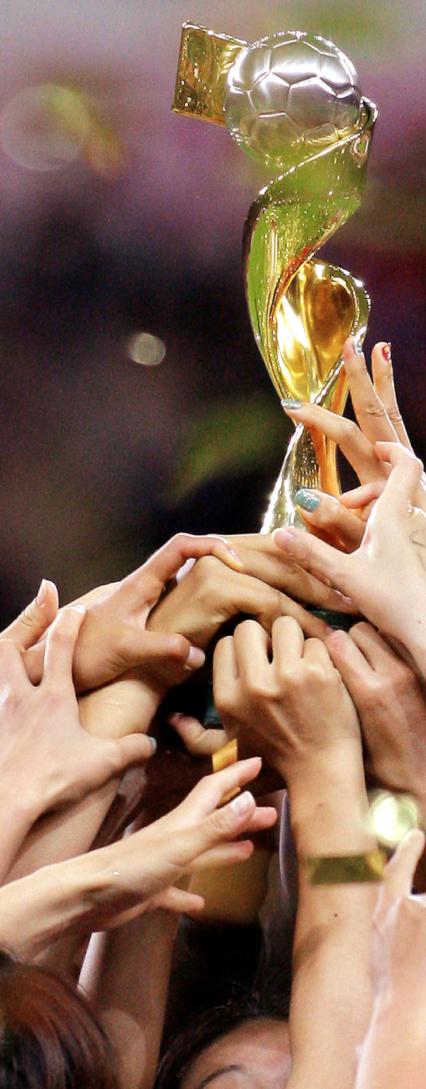 D’une hauteur de 47 centimètres, le trophée du Mondial féminin dépasse de 10 centimètres celui des hommes, mais, avec son poids de 4,6 kilos, il est plus léger de 1,5 kilo.
