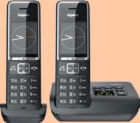 p. ex. set de deux téléphones fixes Comfort 550 A 7940.630 Écran couleur TFT, fonction mains libres, répondeur téléphonique, annuaire pour max. 200 entrées, Eco-Dect