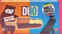 Bâtonnets de crème glacée duo culte produit surgelé, vanille-chocolat, 12 x 57 ml, (100 ml = 1.10)