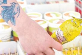 p. ex. fraise, 150 g, –.85 au lieu de 1.05, (100 g = –.56)