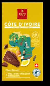 Seit 2012 bezieht Migros-Tochter Delica alle Kakaobohnen aus der Elfenbeinküste direkt von der Kooperative Necaayo. Davon profitieren derzeit rund 600 Bauern. Mit einer RainforestAlliance-Prämie und 50 Rappen Spende pro verkaufte «Côte d’Ivoire»-Tafel zusätzlich wird ihnen die Existenz gesichert. Ausserdem unterstützen Käuferinnen und Käufer diverse soziale und ökologische Projekte, etwa das Pflanzen von Schattenbäumen, um die Biodiversität auf den Plantagen zu fördern und CO₂ zu speichern.