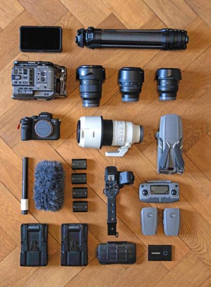 2 Meine Ausrüstung «Die Kamera, Objektive und das Mikrofon gehören zu meiner Arbeit dazu. Damit bewege ich mich in den Bergen, um zu filmen und zu fotografieren. Manchmal bin ich allein im Einsatz und mache alles selbst.
