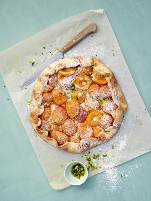 Backofen auf 200 °C Unter-/Oberhitze vorheizen. 600 g Aprikosen halbieren und entsteinen. In eine Schüssel geben und mit 1 EL Weissmehl bestäuben. Einen runden Dinkelkuchenteig auf ein mit Backpapier belegtes Blech legen. 3 EL gezuckerte Kondensmilch auf dem Teig ausstreichen. Aprikosenhälften auf dem Teig verteilen, ca. 5 cm Rand frei lassen. Teigränder darüberklappen und leicht andrücken. In der Mitte des Ofens ca. 40 Minuten backen. Galette auskühlen lassen. Mit 2 EL gehackten Pistazien und 1 EL Puderzucker servieren. Mehr Galette-Rezepte auf migusto.ch