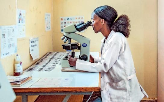 Derartu Shuwe (24), Mitarbeiterin am Bulle Korma-Gesundheitszentrum, kann die Proben ihrer Patientinnen und Patienten dank dem Solarstrom heute schneller untersuchen.