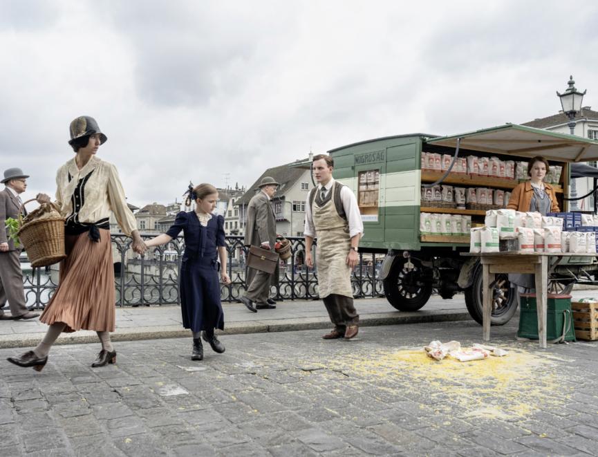 Reportage sur le tournage du spot publicitaire racontant la création de Migros par Adele et Gottlieb Duttweiler.