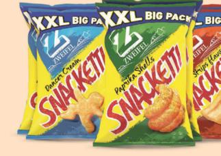 Zweifel Snacketti XXL Dancer Cream, Paprika Shells und Bacon Strips 2 x 225 g 40%