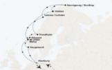Datum: 29.07. einen Tag kürzer: Hamburg, Alesund, Tromso, Honningsvag, Leknes, Olden, Haugesund, Hamburg.