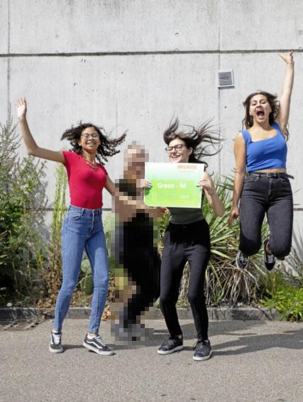 So stehen die vier jungen Frauen nun auf der Bühne am grossen Live Finale und rufen die Zu schauerinnen und Zuschauer auf, die grünen Punkte vom Boden zu nehmen. Darauf steht «Green M» – der Name ihrer Idee.