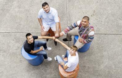 Auch im Finale: Das Team Chocolat Frey (oben) schlug eine Plattform vor, auf der sich Migros-Mitarbeitende für freiwillige Einsätze melden können. Vier IT-Lernende des MGB (unten) haben ein Programm entwickelt, das Ju gendlichen mit Beeinträchtigungen den Eintritt ins Arbeitsleben erleichtert.