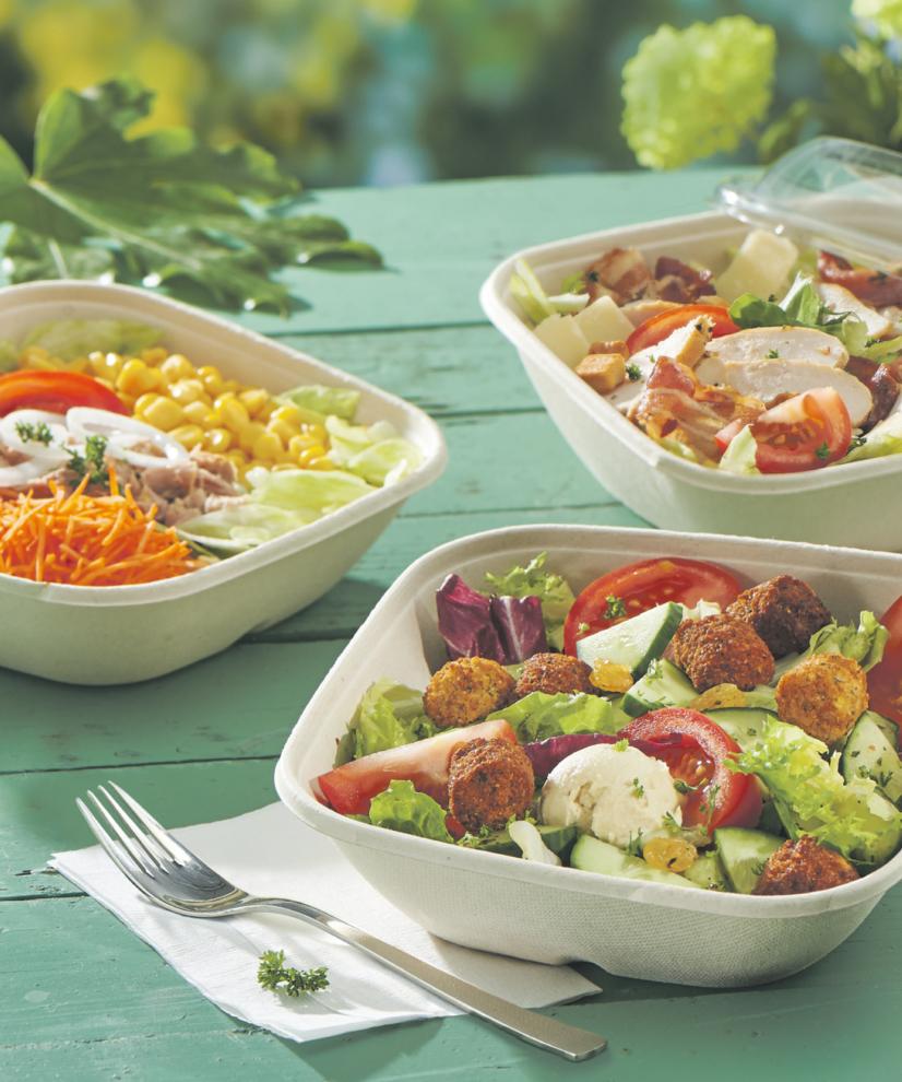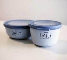Vom Buffet einfach in eine Daily-Mehrweg schale schöpfen und die Speisen vor Ort oder daheim genies sen. Die Behälter gibt es in zwei Grössen.
