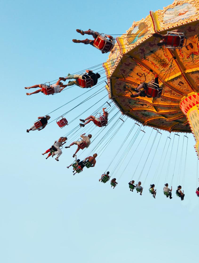 Es ist Chilbizeit! Musik, Gerüche, Rummel, Lärm und Aufregung. Nie gefehlt haben Zuckerwatte zupfen, Raclette futtern, gebrannte Mandeln zerbeissen, den roten kandierten Apfel schlecken. Dann ab auf die Achterbahn oder auf eine der verrückten Attraktionen, die sich um die eigene Achse drehen. Die Welt steht Kopf. Die leise Befürchtung, dass das Portemonnaie irgendwann unten auf dem Boden aufklatschen würde, wird durch den Adrenalinschub während der ersten Drehung in den Wind geschlagen.