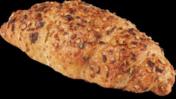 Préchauffer le four à 210 °C, chaleur de voûte et de sole. Couper 4 croissants aux graines de courge en deux. Tartiner les fonds avec 4 cc de beurre mou et les chapeaux avec 2 cc de moutarde. Partager les tranches de 80 g de jambon de derrière en trois. Râper un tiers de 250 g de gruyère, trancher finement le reste. Espacer les fonds de croissant sur une plaque chemisée de papier sulfurisé, les garnir de jambon et de tranches de fromage. Poser les chapeaux, puis les parsemer de fromage râpé et de poivre. Glisser au milieu du four et faire gratiner env. 10 min. Servir aussitôt.
