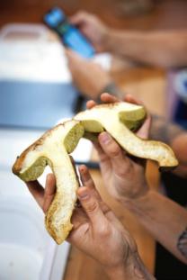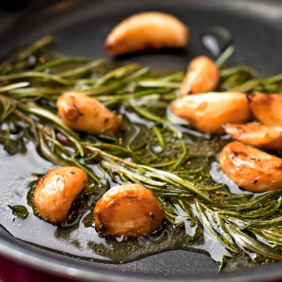 Kleine Kürbisse kann man ganz, grössere halbiert in den Backofen geben – noch mit der Schale. Nach 30 Minuten Garzeit bei 120 Grad löst sich das Fruchtfleisch ganz leicht. Beim Orangenen Knirps oder Hokkaido-Kürbis spart man sich das Schälen komplett, denn anders als bei anderen Sorten gart seine Schale ebenso schnell wie das Fruchtfleisch.