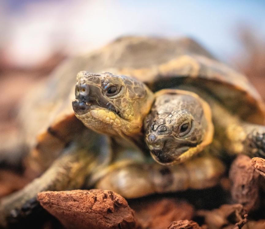 Janus est une tortue grecque mâle née avec deux têtes. Dans la nature, cette singularité aurait limité son espérance de vie, car, entre autres, elle l’empêche de se recroqueviller entièrement dans sa carapace pour se protéger. Mais au sein de l’institution où elle a vu le jour, tout a été mis
