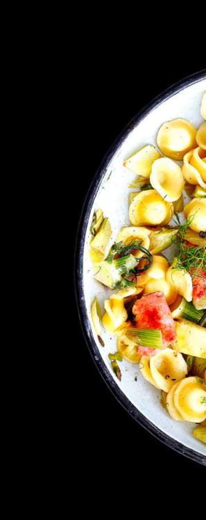 ORECCHIETTE MIT FENCHEL 300 g Orecchiette in reichlich Salzwasser al dente kochen. Abgiessen und abtropfen lassen. Inzwischen das Grün von 600 g Fenchel wegschneiden und beiseitestellen. Fenchel je nach Grösse längs vierteln oder sechsteln, quer in Streifen schneiden. In einer Bratpfanne mit 4 EL Olivenöl braten. Wurstbrät von 2 Tessiner Salsicce in Stücken aus der Haut in die Pfanne drücken. Ca. 5 Minuten braten. Etwas von der Schale einer halben Zitrone dazureiben, diese auspressen und den Saft dazugeben. Fenchel dazugeben und bissfest dünsten. Alles mit Orecchiette mischen und mit Salz und Pfeffer abschmecken. Mit Fenchelgrün servieren. Rezept auf migusto.ch