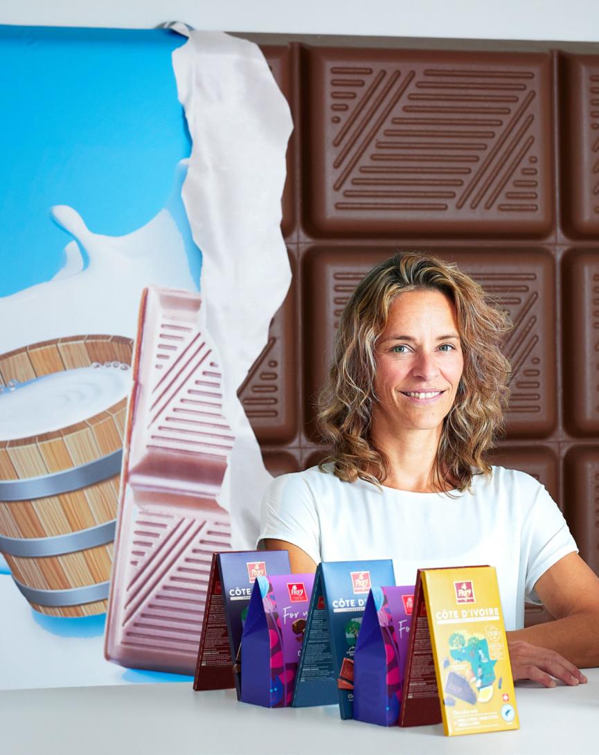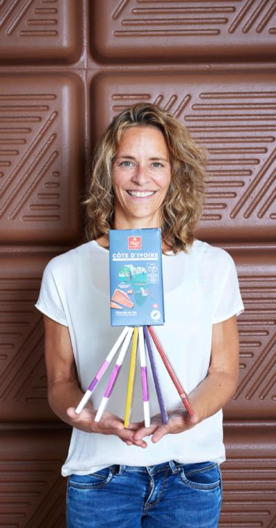Gaby Alder, 44 ans, est responsable de l’analyse sensorielle chez Delica, une entreprise de Migros Industrie, à Buchs (AG), où est fabriqué le chocolat Frey. Auparavant, cette confiseuse et pâtissière de formation développait ellemême des produits à base de chocolat pour Migros. Elle vit dans la région de Lenzbourg (AG).