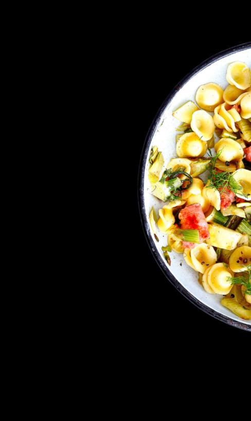 Cuire 300 g d’orecchiette al dente dans de l’eau bouillante salée. Entre-temps, retirer les pluches de 600 g de fenouil et les réserver. Couper le fenouil en lanières. Faire revenir dans une poêle avec de l’huile. Extraire la chair de deux saucisses à rôtir de porc d’env. 180 g et poêler env. 5 min. Y râper un peu de zeste de citron. Exprimer le jus du citron et l’ajouter. Ajouter le fenouil et l’étuver en le gardant croquant. Mélanger le tout avec les orecchiette, puis relever de sel et de poivre. Servir avec les pluches. www.migmag.ch/orecchiette-au-fenouil