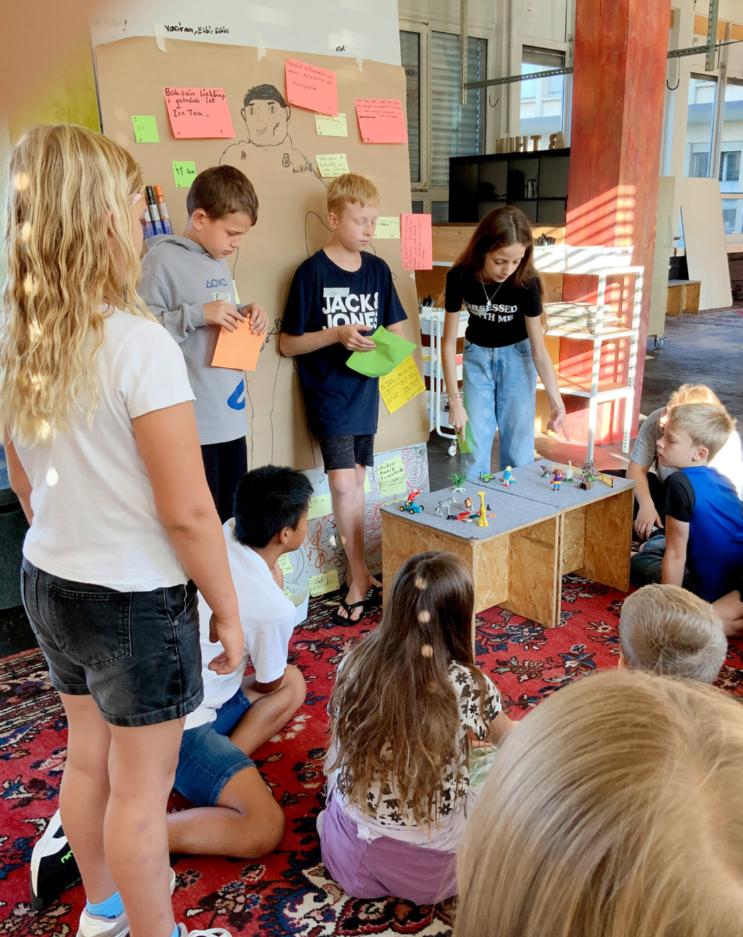 22 Kinder trainieren in Workshops, wie sie auf neue Ideen kommen