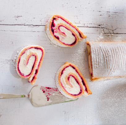2 Äpfel entkernen und in feine Scheiben hobeln. Backofen auf 180 °C Unter-/Oberhitze vorheizen. Formboden mit Backpapier auslegen. Rand mit wenig Butter bestreichen. 3 Eier mit 110 g Puderzucker zu einer festen hellen Masse aufschlagen, 140 g Mehl löffelweise unterheben. ⅓ vom Teig in die Form füllen. Apfelscheiben abwechselnd mit wenig Teig darauf verteilen. Restlichen Teig darüber verteilen. In der Ofenmitte ca. 35 Minuten backen. Kuchen abkühlen lassen. Aus der Form lösen. Mehr Kuchenrezepte auf migusto.ch