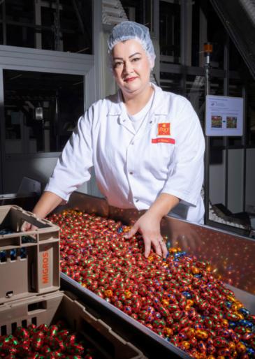 Florentina und die Schokoladenfabrik Maschinenführerin Ramaj arbeitet bei Delica in der Packerei, wo unter anderem die bunten FreySchoggikugeln eingewickelt werden.