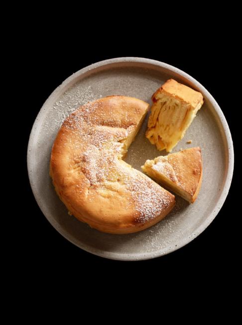 2 Äpfel entkernen und in feine Scheiben hobeln. Backofen auf 180 °C Unter-/Oberhitze vorheizen. Formboden mit Backpapier auslegen. Rand mit wenig Butter bestreichen. 3 Eier mit 110 g Puderzucker zu einer festen hellen Masse aufschlagen, 140 g Mehl löffelweise unterheben. ⅓ vom Teig in die Form füllen. Apfelscheiben abwechselnd mit wenig Teig darauf verteilen. Restlichen Teig darüber verteilen. In der Ofenmitte ca. 35 Minuten backen. Kuchen abkühlen lassen. Aus der Form lösen. Mehr Kuchenrezepte auf migusto.ch
