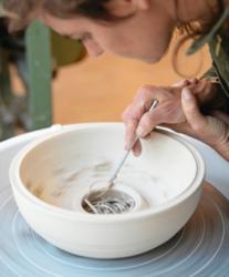 Das läuft bei mir «Meine Wasserurnen lösen sich nach ein bis zwei Stunden im Wasser oder in der Erde auf. Die Asche einer ver storbenen Person wird so dem natürlichen Kreislauf zurückgegeben, und die Angehörigen können sich während des Trauerrituals bewusst verabschieden. Vor über zehn Jahren ist ein guter Freund von mir gestorben. Seine Eltern suchten nach einer passenden Urne, um die Asche ihres Sohns zur Aare zu tragen und sie dort zu ver streuen. Sie fanden aber nichts Schönes. Sie fragten sich auch, was sie danach mit dem Gefäss machen sollten. So kam ich auf die Idee mit der Wasserurne. Als gelernte Keramikde signerin habe ich das gleich selbst umgesetzt. Noch heute ist jede Urne, die ich anfertige, ein Unikat. So wie auch alle Menschen verschieden sind.»